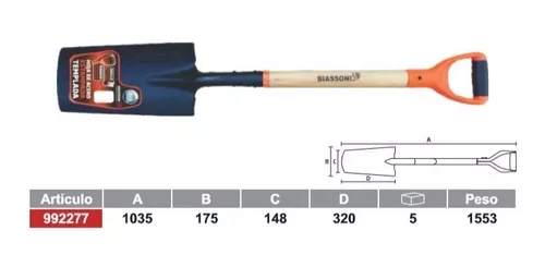 PALA POCERA CABO CORTO Y EMPUÑADURA BICOMPONENTE RECTA BIASSONI 992277