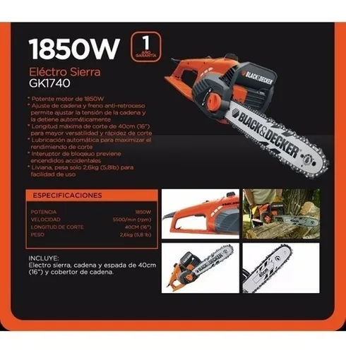 ELECTROSIERRA 1850W - ESPADA 40CM - GK1740-AR - BLACK & DECKER