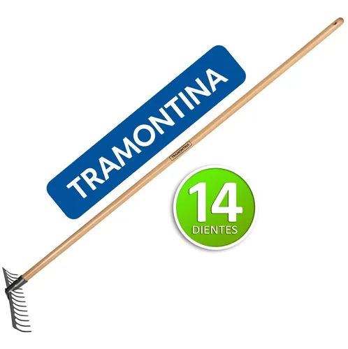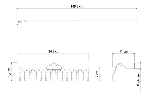 Rastrillo curvo liviano, 14 dientes, mango de madera 145 cm