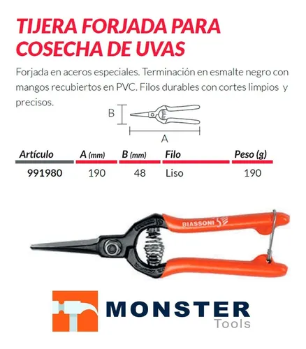 Tijera Estampada Cosecha Limpieza Uvas Filo Liso Biassoni