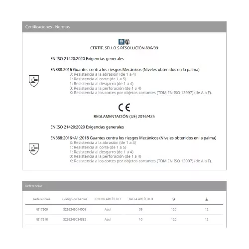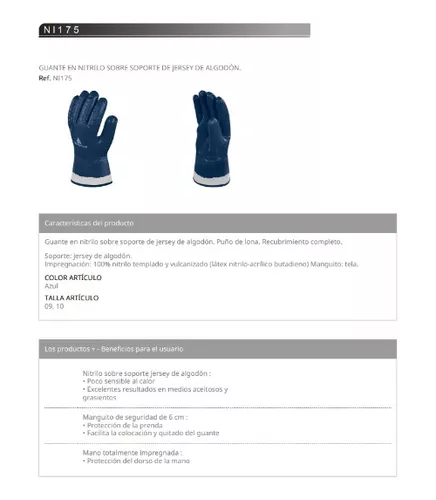- Impregnación: 100% nitrilo templado y vulcanizado (látex nitrilo-acrílico butadieno)