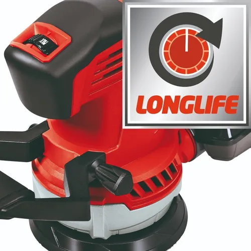 La lijadora excéntrica TE-RS 40 E es una lijadora excéntrica robusta y potente, que presta servicios imprescindibles a todo aficionado al bricolaje durante el lijado de madera, plástico y metal. Gracias a la unidad electrónica para regular el número de revoluciones se puede adaptar su potencia de lijado adecuadamente al material a mecanizar y la tarea correspondiente y por ello es perfectamente apropiada para una elevada remoción y lijado fino. La TE-RS 40 E está equipado de un micro-hook and loop, de modo que los papeles abrasivos se pueden cambiar en segundos y están en contacto con la placa de lijado sin pliegues. Mediante las superficies de asido ergonómicas con goma y el asidero adicional también se garantiza una manipulación cómoda en el caso de trabajos más prolongados. Para un trabajo limpio y con poco polvo, el equipo dispone de una aspiración de polvo activa con caja de filtros. Se realiza el suministro inclusive el práctico maletín.