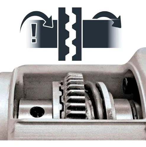 Un acoplamiento de resbalamiento por sobrecarga, que se dispara inmediatamente en caso de atasco repentino de la herramienta, garantiza una mayor seguridad durante el trabajo. Un sólido tope regulable de metal permite taladrar repetidas veces exactamente con la misma profundidad de perforación. El mango auxiliar está dotado de un seguro contra torsión, así como de una superficie antideslizante que permite un manejo cómodo y seguro.