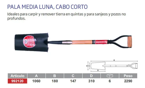 PALA FORJADA MEDIA LUNA CON CABO CORTO - BIASSONI 992120