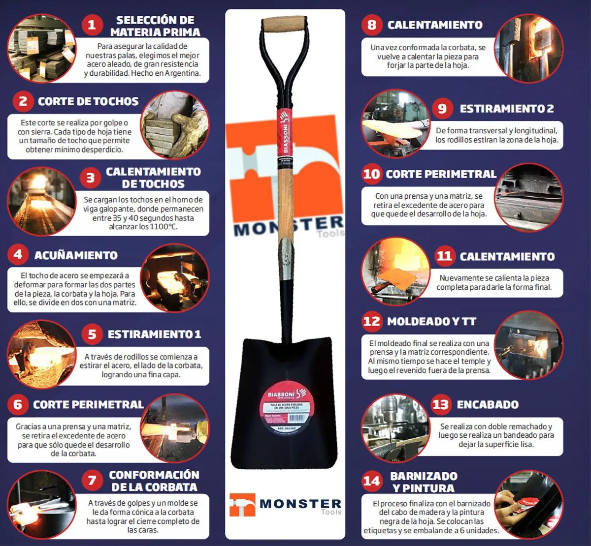 - Hoja fabricada en una sola pieza, forjada en acero especiales.