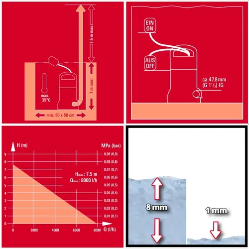 - Ya es posible el arranque de la bomba desde un nivel de agua de 8 mm