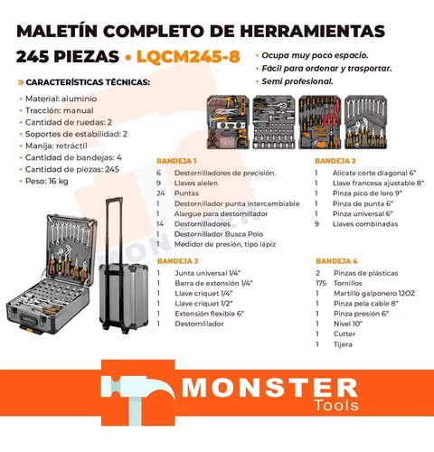 MALETÍN COMPLETO DE HERRAMIENTAS - 245 PIEZAS • LQCM245-8 • LÜSQTOFF