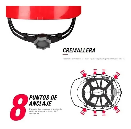 8 puntos de anclaje al casco.