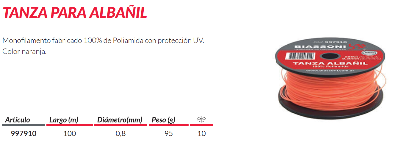 Monofilamento fabricado 100% de Poliamida con protección UV. Color naranja.