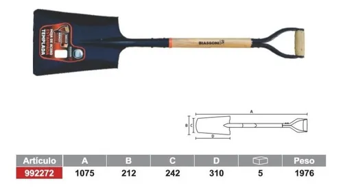 PALA CUADRADA, CABO CORTO Y EMPUÑADURA METÁLICA CON MADERA BIASSONI 992272